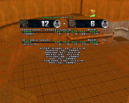 Played without admin :< On dm3 and d5 victim's connection took a nosedive so those maps where replayed with the remaining time + 3 min and scores before the crash added.