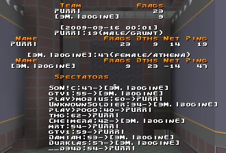 purri picked q2dm1 & ptrip, ibogine picked aeroq2 & q2duel5.. for the ping difference: ibogine's connection was broken and he had a lot of packetloss.. the only thing which helped him was packetdup high enough to eliminate the pl, but unfortunately, there's no polish server which allows the packedup, so ibogine agreed to play on dediz with ping disadvantage but pl free instead of polish server with ping advantage but pl as well..