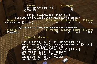 Faderjoko overflowed on q2dm1, with 0:27 minutes left to play. The situation was deemed to be in line with rule 5.1.21, so an extra 3 minutes was not played.