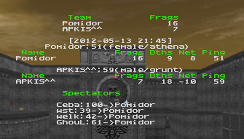Pomidor picked q2rdm2, APKIS picked q2dm2, 3rd map ptrip, 4th map ztn2dm2.
