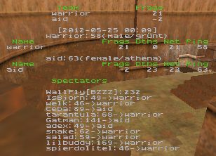 The server crashed at 10:58 on q2dm3. The game was then restarted with 11+3 minutes. Scores from both parts of the map count.
