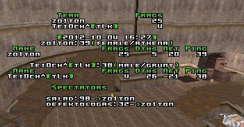 Due to zolton's computer crash on ztn2dm3, the demo from the 1st part of the map is lost. This extenuating circumstance (force majeure) is recognized by the Crew, and no penalty will be issued for this (). However, the 2nd part of the map was not recorded, and for this zolton receives a penalty of 0.5 warning ().