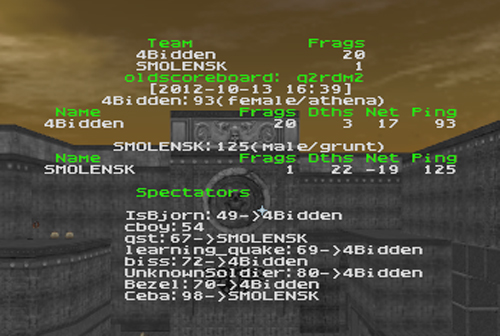 Played. Map choices: SMOLENSK - ztn2dm2 4Bidden - q2rdm2