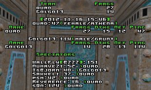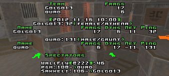 Quad picked the server and Golgo presented q2duel1 and ptrip to choose from. Q2duel1 as final and deciding map. GG!