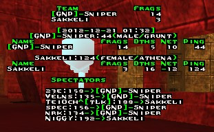 During server searching we found other 71(Sakkeli) 98(Sniper) server for home/away. But Sakkeli decided to play all games on 44 89 server, telling that he beter play one ping all games, then changing pings every game and that he has no time for arguing with Sniper about servers. During 2 game Sakkeli's ping from 88 become 120. so it was 44 vs 120. While sever searching on Coba's server it was 70 95 in favor of Sniper. We tried to get Sakkeli there but he didnt want too , preffering to play 120 vs 44.