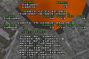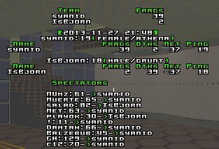 adrenaline rush on last map, koldduel.This could ve gone to either of these two complete duelers. Syanid, one of the kings of quake2 vs IsBjorn, somehow newblood with a unique calm and refined style. Lets see what happens in playoffs, this group atm looks very tight. Group of death as some said