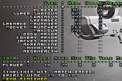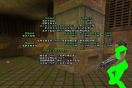 ----------------------------------------------------------------------- spirit did not upload demos. According to rules 3.3.4, 3.4.1, 3.4.2 and 6.2.6 he receives 3 warnings. /Ceba -------------------------------------- spirit was kicked out on 2014/1/13 for reaching and significantly exceeding the warning limit for their division. All their games turn into walkovers. /claire