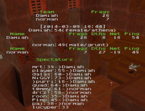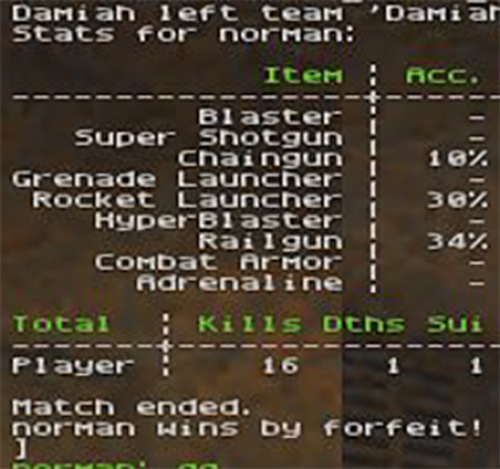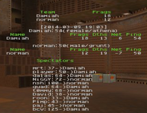 Damiah forfeited q2duel5. -75 frags for him and a warning.