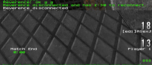 Reverence forfeited q2duel5and receives gets penalty of -75 frags and 1 warning. (rules 4.3.1 + 6.2.1).