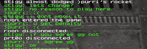 st1gmata asked to stop playing omf, purri agreed. purri was in the lead 13:0 at that moment.