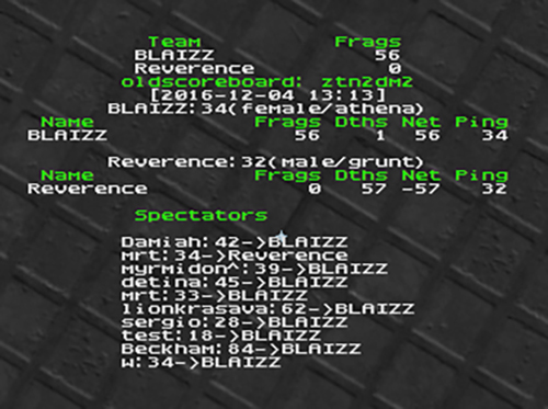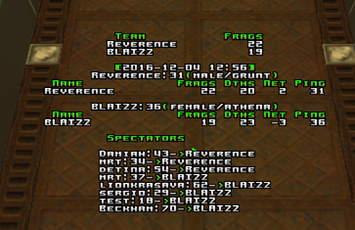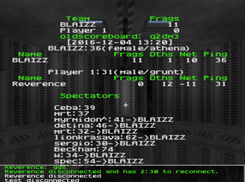 Reverence quit on q2dm3. -75 frags and a warning.