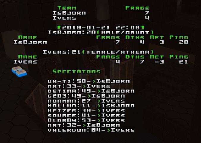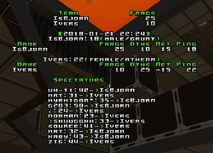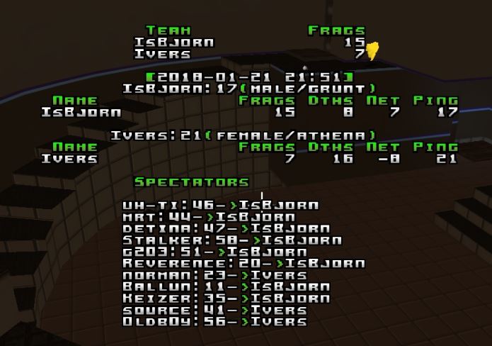 Isb picked q2dm1 and Ivers picked ztn2dm3. Q2duel5 thrid map.