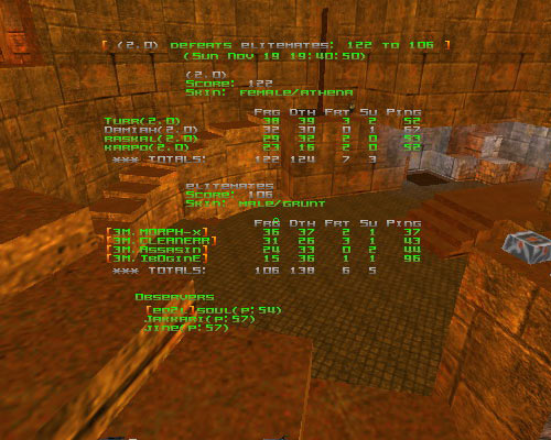 q2dm2 was a thriller.2.0 guys took RA lift and kept it for the most of the game.But moments spent there by 3M gave them advantage and with awesome quad runs gave 2.0 clan a tough time.They lost all the difference they made during first half of the game , even went behind for a few minutes but they proved better in the last seconds and won.