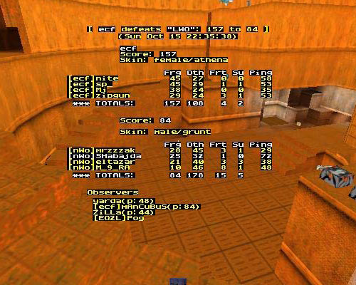 Conclution: nWo put up a good fight, but they could only resist for about 10 min on each map before ecf's strong teamplay became too much to handle. GG and well played by both clans!