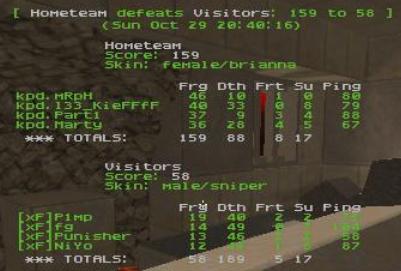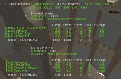 During the tenth minute KPD was leading already by 60 frags ( 85:25 or something ) and during last five minutes KPD 112:43 xF. When the timelimit hit, visible domination by KPD.