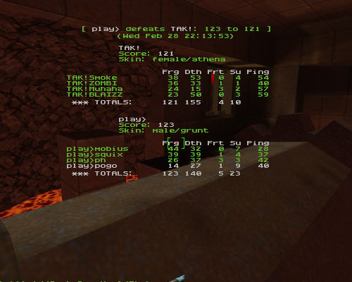 nice one tak, close dm1! Shame 'bout dm6, so close. btw on dm6 28 suicides for play, nice! and play nice lava diving technique