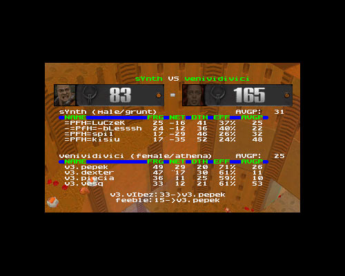 Froger nie rozsmieszaj mnie nawet, dm2 po pierwsze nie gralem, po drugie dm1 gralem od polowy, nie bylem ani rozgrzany ani nic a i tak prawie wygralismy, zabraklo niewiele. Do tego kisia netgraph... czerwony wiec mi tu nie pierdol ze jak pio nie ma to nie umiemy nic zagrac.