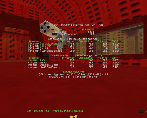 On dediz where we played the first match but it got abandoned, it was pretty obvious finr had rage wrapped up, the score was going to be monsterous. dediz was a perfectly fair server ping where everyone pinged an average of around 50-60, though rage where complaining about c12 and impossible having slightly lower pings than 50. I myself wouldnt have mind playing on a 60 ping and they having 50 or even 70 and 60, but any other server was perthetically unbalanced and thats what rage wanted. Dediz was a fine server and we just proved in that 10 minute game alone that we outmatched them simply.