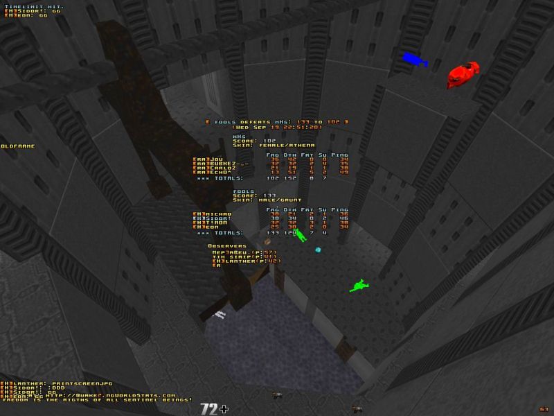 Arch our teamplay was a disaster, only me and bubkez on ventrilo, and on dm2 it was tight up to 15 min with max frag difference of 8 frags. We lost lift and didn't get the last quads that would have saved us. We will play better when we meet them next time.