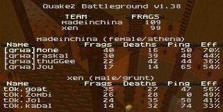 Well that was a weird game.. Yes Cheimera we lost that match due to all the whine. dm7 we had very even fighting, but then when tok got the places at 13-14min I think we all just gave up. Well wp Aone on dm2, I thought we were behind in frags and my teammates shouted that we are leading, it was a shock apparently for me that we played so well on dm2.