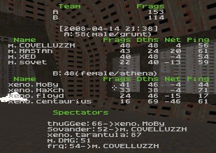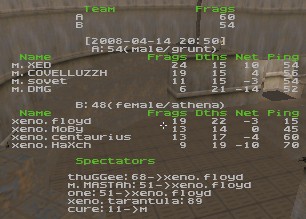 m. picked q2dm2 & q2next1, xeno picked q2dm1 & q2dm3.. server crashed on q2dm1 where xeno was leading 73:64.. they replayed 9 remaining minutes and xeno won in frag count