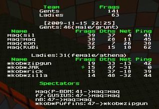 On dm5 with 8 minutes to go we were LEADING with 63 frags and when the game finished we still had 63 frags.