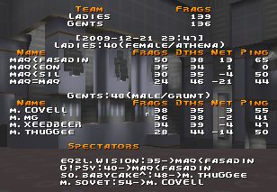 q2dm2/q2dm7 were quite intense whole time.. both teams switching lead all the time, but both times muffzors was able to get couple of more frags in the end and with both.