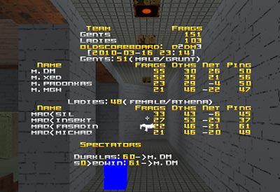 dm2 start granted muffzors the RA lift. The defence was organised quickly there by xed. maq had no intention to let muffzors enjoy the RA and constantly grenade-spammed, rocket-jumped and any-weapon-rushed the lift. Have to give credit to xed who withstood all of that. Without a numeral advantage quad area was nobodies land mostly. Eventually xed broke down after 13 minutes when the score gap already allowed Muffzors to start playing it safe. In the last 5 minutes local fights over positions never turned out to any side lockdown so no miracle comeback from maq.