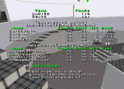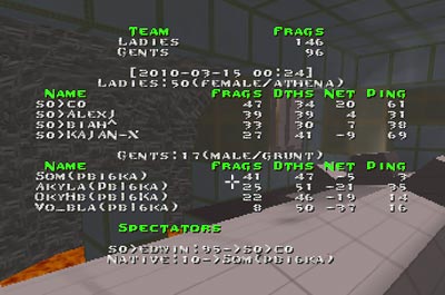 dm1 picked by ribkas. Here s0 won mostly by denieing their opponents rail. Despite the high ping Kajan-X and corpze were good enough to secure water and make some spectacular fragging. Mostly even game through whole 20 minutes with s0 keeping the status quo of +15 frags to secure a 2:0 victory.