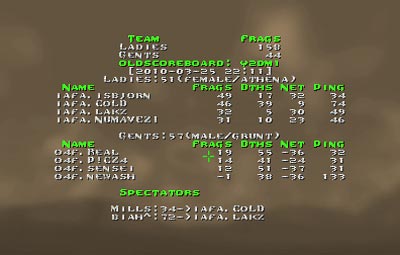 q2dm1 by iafa and q2dm6 by o4f. Unfortunate for o4f 3v4 game due to newash lagging dramatically...