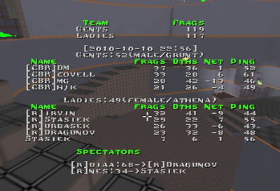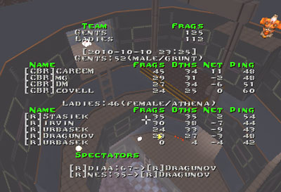 Interesting matchup between 2 very even teams. Nice comeback by CBR at dm1 leading to overtime and good lockdown at dm2 scoring +20 with 2 minutes before the end. But to summ up the game was frag for frag close. Little more luck for CBR this time.