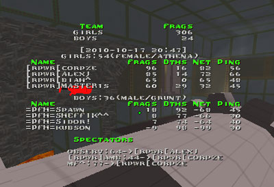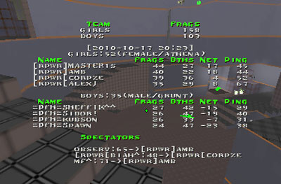 eon/biah: since i'm not playing it's actually not my intention to insult any team again (like my last season 'whine' comment to s0 (+cleaner) being too strong for div #2 and actually winning div 2 finals). Fact is this SAME team won div2 last season convincingly, so an exact same team belongs in div1. I think rpwr would possibly lose by 30-50 frags difference by play or HBQ and would be very equal(maybe even better) to all other div1 clans. BoD ended last in div1 last season. Normally clan that wins div2 goes to div1 right? Rpwr team = last season s0 team that played 90% of matches including 1/2 and div 2 final. Rpwr(s0)team won last season final vs [r] - (3-0 = convincingly and even raping on some maps). [R] plays div1 this season?? A worser team plays div1? Sorry if i'm saying stupid things or insulting especially not you Biah (you know i like you.you're ..)... i've no bad intentions, i just say what i notice and i think it's strange. My logical advice to admin-team: ->replace Rpwr team to div1 directly (they're active enough to play 2 matches) -> place bod (last in div1 last season) to div2? Since biah is also headadmin, i wonder if he's man enough to admit the mistake of placing his rpwr team in div 2...