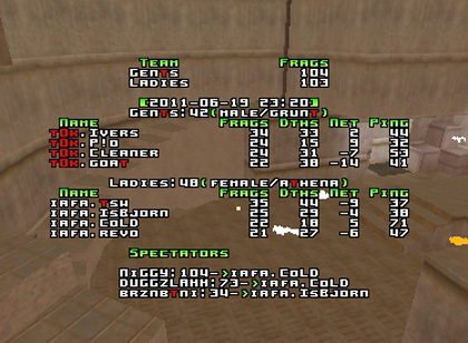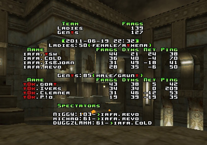 great guess biah! you 're right!... about the game... q2next1 was great to spec, but dm5 was boring... from the beginning tOk had the lead with big difference.... about dm1; iafa started really good and get the room's control but later tOk take the advantage and last push was great for them... about dm3 there was no much word... Revo was awesome but alone, cold and isb were not much adapted and played as they had to;to win that game... on the other side p!o was really well and goat support him with frags... so it was quite great game... Well Done tOk and great season for iafa...