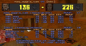 one minute before the end of q2ht we were winning with 20 frags, but 3c took last quad