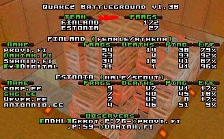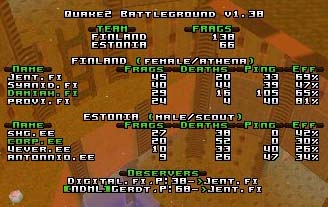 Maps were q2dm2 for Estonia and q2dm8 for Finland.