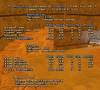 Estonians took the lead in the very beginning of the game and kept it growing until there was 8 mints to play, there was a moment where 3 estonian players had 400+ ping and 4ever lagged out, when he returned Italy managed to close up the frag diff, but then Shuggie made some nice railing and fragged estonians away once and for all. wp .ee/.it