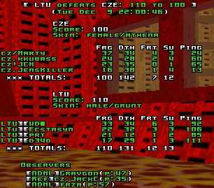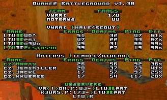 After 10 minutes it switched and Marty and his colleagues were profitting of their ping advantage at Rail. Lithuania's best fragger DM had overflowed and was replaced by Parashut. He became the new top fragger of the team but this time at Quad and RL. From there Lithuania took almost all quads and Invul and the score was still really close but with a small advantage to LTU until the end.