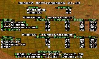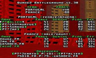 Despite the pretty big domination of Portugal, France kept fragging them a lot everywhere on the map but every minute, the reasonating sound of QUAD DAMAGE was the deadly bell for frenchies.