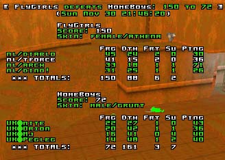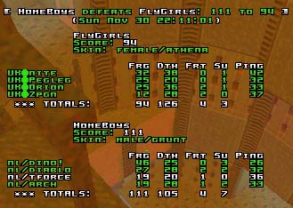 Maps were q2dm1 for the Netherlands and q2dm2 for the UK. Server was telenet warserver (195.130.132.156:27911) located in Belgium.