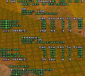 UK showed a nice fairplay attitude and agreed for a restart. Unfortunately this start wasn't more lucky for France and UK started quickly their full domination machine.