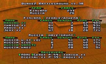 Russia chose q2dm2 as their map, and Finland took the good old q2dm1.