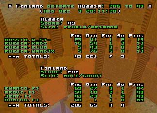 Q2dm2 was Russia's map and for a moment i thought it was the right choice. Scores were quite even for the first minutes but then Finland took a fair grip over the map and didn't give it away for the rest of the time.