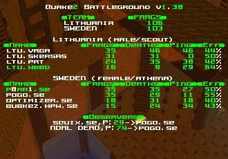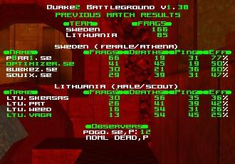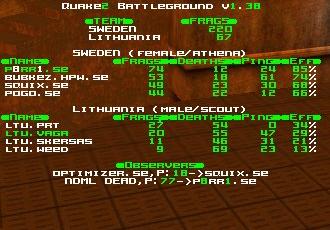 A whole different story here. Lithuania not only managed to hold the lift and get most armors here but also fought well at quad against Sweden. The game was very intense, no team got a bigger lead than 10 frags, Sweden was leading 2-10 frags for almost all the time, but in the end Vaga made a few quadruns and managed outweight the score in favor of Lithuania, creating a huge surprise.