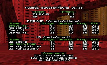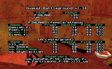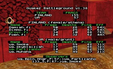 Finland won, dominated...Damiah and Co. took bundle of quads and did many many quad frags. There was some problems after the match with pings, but we stayed on bassler for other 2 maps.