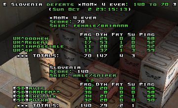 Q2DM1, the tarnished old classic. Everyone knows this map like the back of their hand. Some love it, Some hate it, others just follow the crowds looking for acceptence on this map. This map was a tight gmae most of the game. The UK