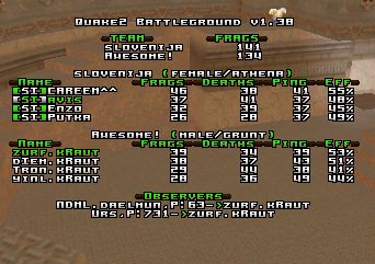 Anyway, must say Slovenia has been suprising me this far. Not only playing well, but also seeming to be a merry gang of quakers who have a lot of fun (except when having pl). Germany was showing great sportsmanship too, really happy they are still around. Couldn't ask for an easier game to admin. Aside the ping of course :P