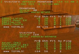 Unfortunately, most of their quadruns were killed at birth by Estonia's railers or bfg spammers. Brazil never really attempted to regain the RA-Lift and I think it gave Estonia too much space to get geared with armors and devastating weapons.