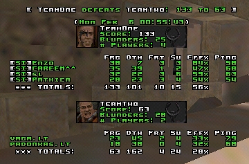 Another weird map. I don't remember a whole lot about this, except that Slovenia somehow got a lot of frags without having RA room much. They just camped RL and got a shitload of very lucky frags throughout the map. Enzo dominated q2dm7, and I thought enzo was q2dm1 player only (Putka told me this in another game I adminned for them), but he did quite well here. The Lithuanians had RA a lot, with Padonkas spending time there practicing his weapondrop binds. First dropping cells, then the ssg, then picking up the cells and dropping the hyperblaster while picking up the ssg and dropping shells or something like that. In the end his teammate and himself ended up without any ammo for their respective guns sorta. Think some rockets were dropped somewhere in between as well, just to showoff.