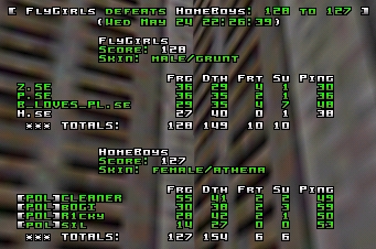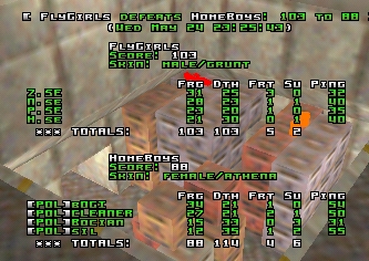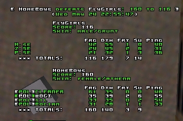 First game on q2dm3 was a classic. It wasn't so much for outstanding play, rare to see a game with as many friendly frags and lavadives, but it was the nerve and intensity of the game. To begin with it looked like Sweden was a bit unaware of the quad, Poland seemed to steal it all the time, managing to get a lead which they held for a while. Untill they had like 50 frags. Then suddenly, the Swedes locked down the map completely. Seemed like they got like 50 frags on Poland while the Poles didnt get a single one, which put them in the lead by 30+ frags or so. Then Poland managed to keep up with the pace, but you also noticed how Poland suddenly got control over every single position on the map. They had rail, they had RL and they had quadruns. It was now the awesome comeback started, and it lasted for a long time. Slowly they got closer frag by frag, untill the final minute. Still about 10-5 frags or so behind, all you could read in console was "random swede railed by random pole". In the end we saw a Polish player in a very very intense rocketlauncher battle with an unarmed swede at the RL, it was sooooo close, had the game lasted 1 second more I wouldn't be suprised if the Poles would have won. But, they didn't!