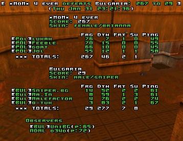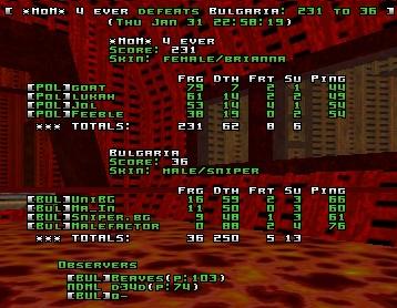 Goat on dm3 could have easily scored 100 if he hadn't missed 60 railshots. On dm1 in the beginning for some time Poland had 4 guys at rail, while Bulgaria had 3 on lift.